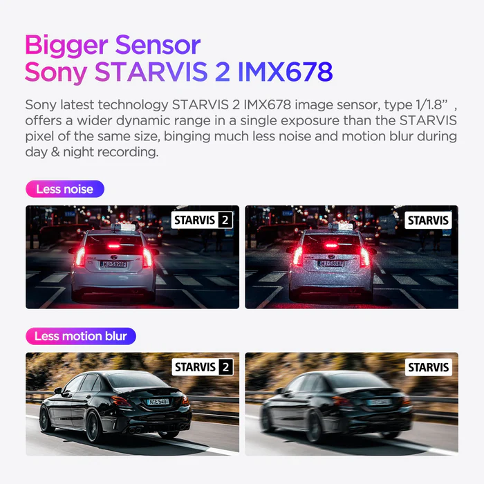 Là sản phẩm đầu tiên triển khai công nghệ Sony STARVIS 2 mới nhất, A139 Pro đủ mạnh để vượt trội hơn hầu hết các đối thủ camera hành trình 4K với độ rõ nét hình ảnh và độ chính xác được nâng cấp đáng kể trong việc ghi hình.